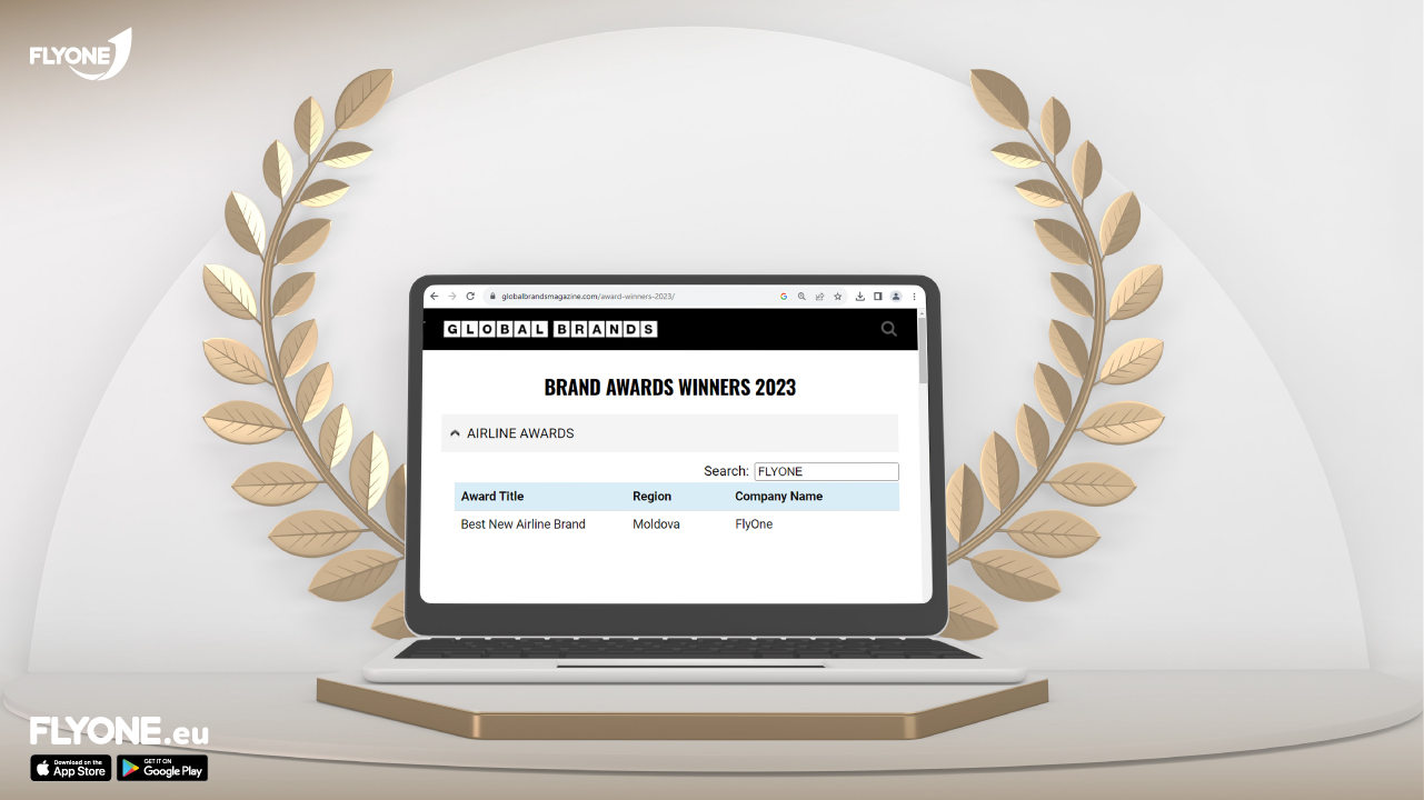 FLYONE a fost desemnată drept „Companie aeriană de top” în cadrul prestigiosului clasament Global Brand Awards. Evenimentul este organizat anual de către Global Brands Magazine (GBM), o publicație internațională de renume cu sediul în Marea Britanie, care premiază companiile și brandurile ce se remarcă prin performanță și inovație.