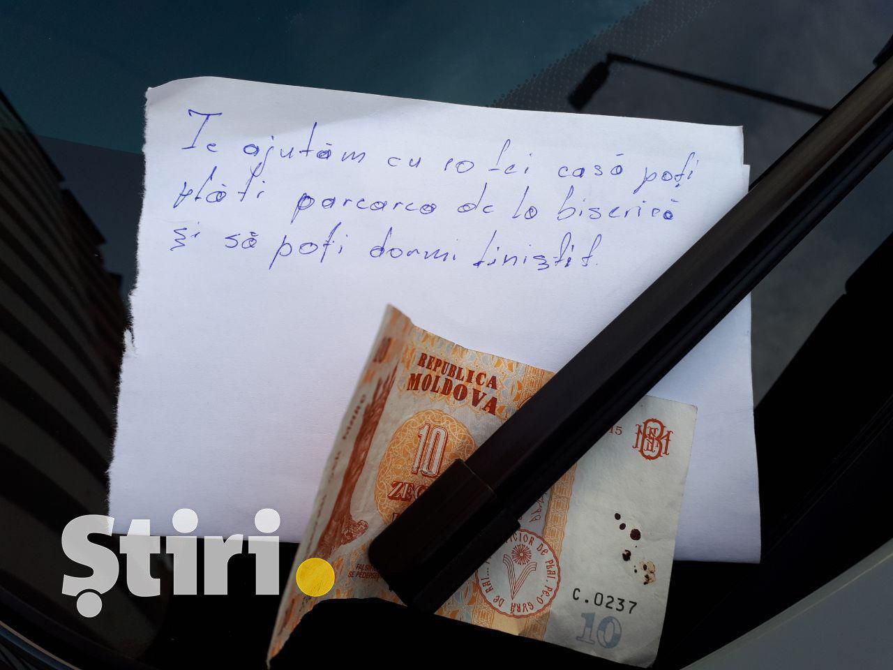 Lecție pentru șoferul unui bolid de lux din Capitală. Vecinii i-au lăsat un mesaj tăios și 10 lei ca să-și poată lăsa mașina la o parcare cu plată, scrie stiri.md