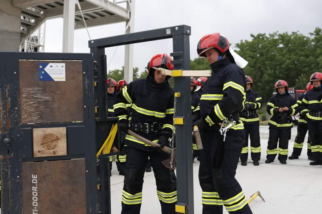 100 de pompieri din Republica Moldova alături de alți 100 de pompieri din România participă la aplicații tactice de instruire privind perfecționarea tehnicilor de intervenție la stingerea incendiilor și procedeelor de căutare-salvare și autosalvare, în condiții de siguranță.