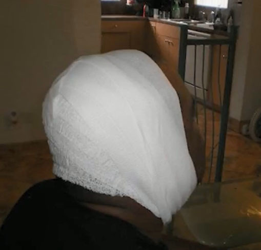 Rănile au fost atât de severe încât bărbatul a rămas fără scalp şi fără o jumătate de ureche şi a avut nevoie de mai multe intervenţii chirurgicale.