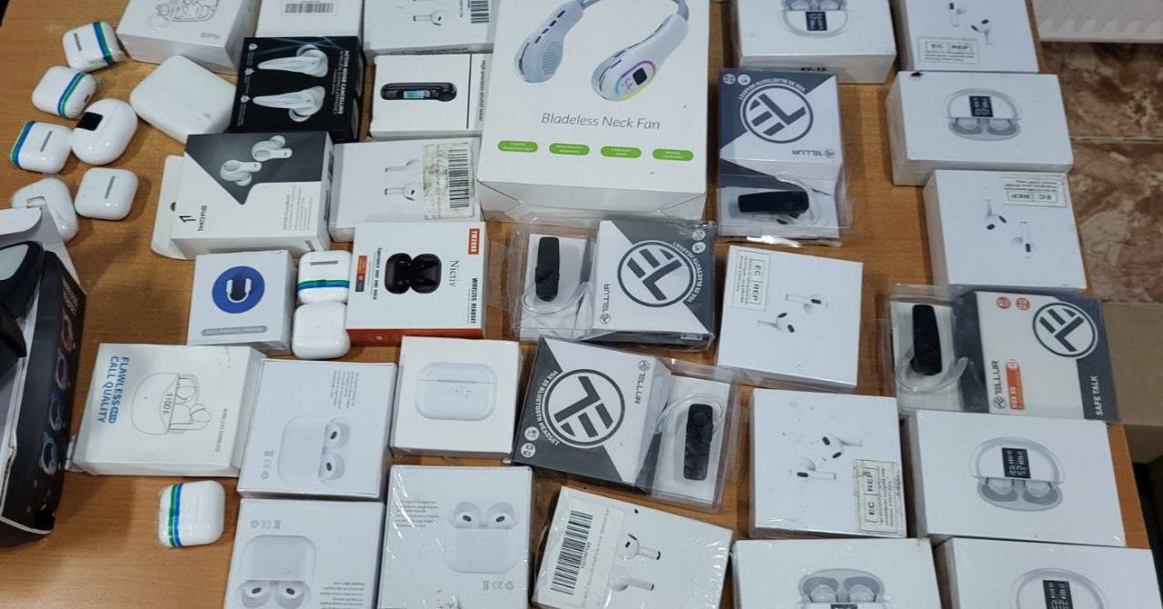În urma efectuării controlului fizic detaliat, în bagajele personale ale unui pasager, un conațional în vârstă de 26 de ani, au fost depistate diverse bunuri (căști, tablete, laptopuri etc.), nedeclarate organului vamal.