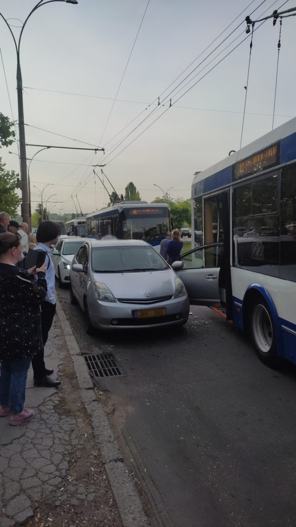 Totul a avut loc în dimineața de 17 mai, în jurul orei 08.00, pe Bulevardul Dacia din sectorul Botanica. În imaginile plasate pe o rețea de socializare se poate observa că ușa din față a automobilului a fost îndoită de troleibuz. De asemenea, și ușile transportului public au fost avariat.