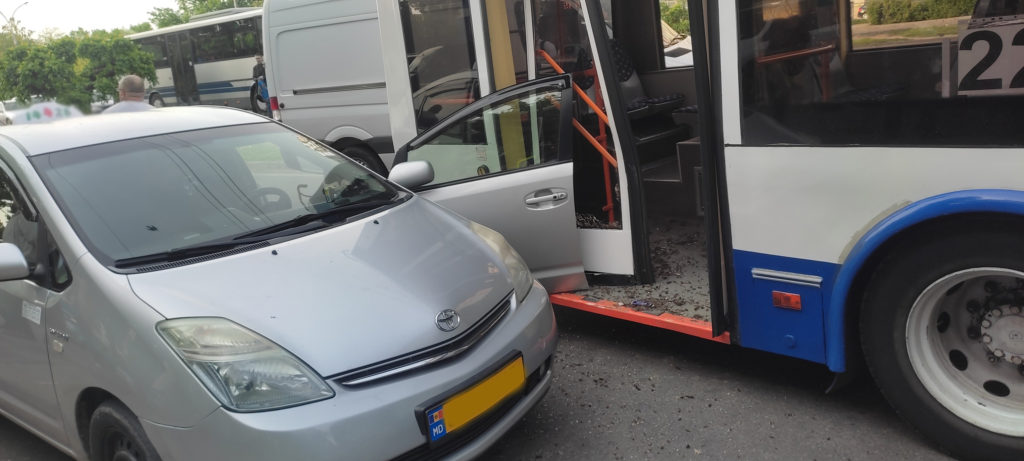 Totul a avut loc în dimineața de 17 mai, în jurul orei 08.00, pe Bulevardul Dacia din sectorul Botanica. În imaginile plasate pe o rețea de socializare se poate observa că ușa din față a automobilului a fost îndoită de troleibuz. De asemenea, și ușile transportului public au fost avariat.