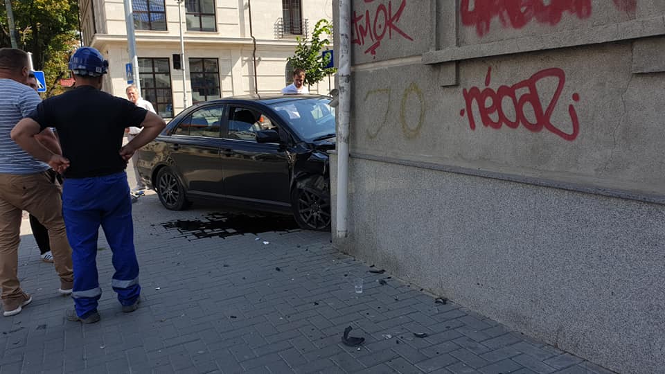 Un nou accident rutier s-a produs astăzi chiar în inima capitalei. Aproximativ la ora 15:45, un automobil de marcă Toyota s-a ciocnit violent cu un alt automobil de marcă Volvo, după care șoferul Toyotei a pierdut controlul volanului și s-a izbit într-un perete, rupând și stâlpul unui semafor.