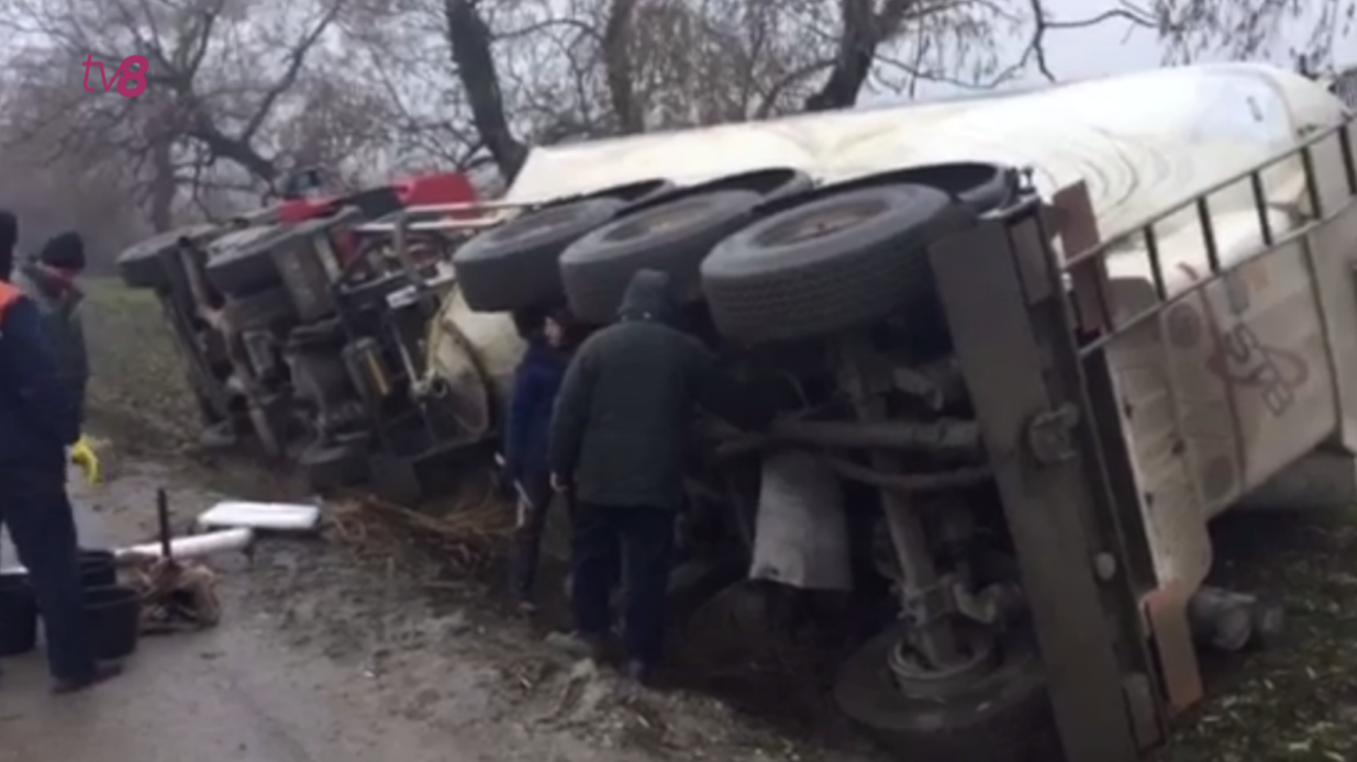 Un accident s-a produs pe 24 decembrie în apropiere de comuna Stăuceni, municipiul Chișinău. O autocisternă s-a răsturnat, pe marginea unui drum, scrie tv8.md