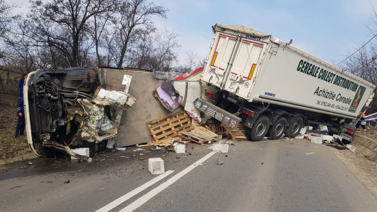 Un camion care circula dinspre Iași spre Răducăneni a rămas cel mai probabil fără frâne într-o vale lungă, periculoasă și a pătruns pe contrasens. Din față, pe sensul opus (spre Iași), veneau două TIR-uri. Șofer primului mastodont a văzut că riscă să fie izbit de camion, așa că a tras de volan dreapta și a dărâmat gardul unei case, ajungând în curte. Conducătorul celui de-al doilea TIR nu a avut timp să reacționeze și a fost lovit în plin.