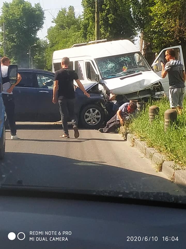 Accident rutier pe strada Muncești. Un automobil s-a tamponat violent cu un microbuz, transmite Telegraph.md