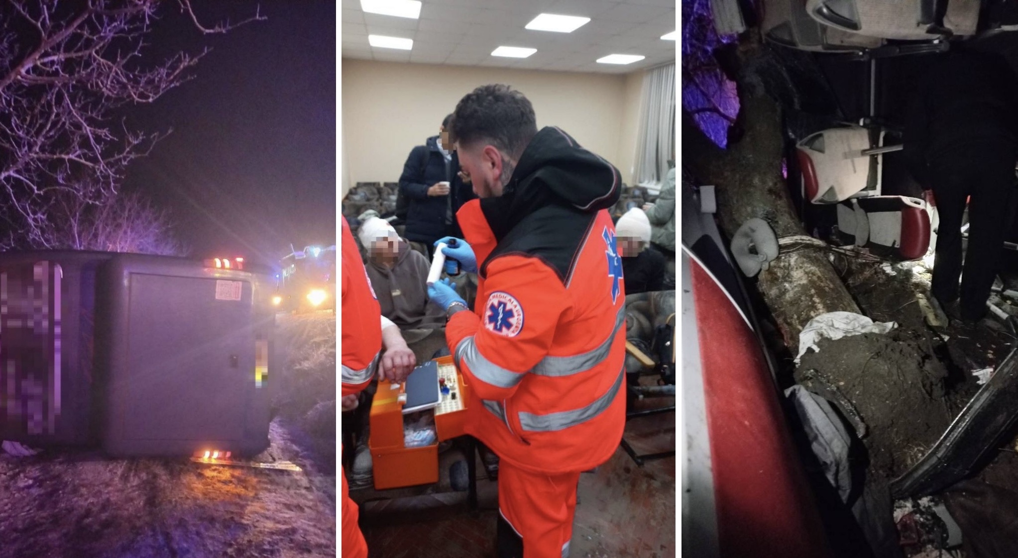 Conform informațiilor preliminare, șoferul unui autocar de pe ruta Kiev-Chișinău, cu 68 de pasageri la bord, într-o curbă, pe carosabil acoperit cu zăpadă, ar fi pierdut controlul mijlocului de transport și s-a inversat, după care autocarul a fost proiectat într-un copac.