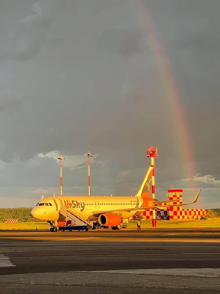 Ploaia și-a lăsat culorile gri după deal și ne-a desenat pe cer o “poartă colorată”…. Ăsta DA “bun venit”!”, a anunțat operatorul avia.