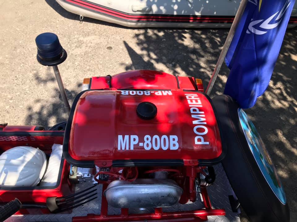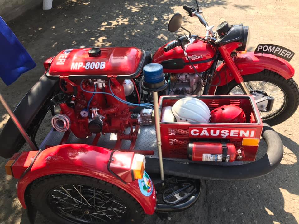 Lucrările de reutilare a unității de transport pentru intervenții la stingerea incendiilor au durat aproximativ 6 luni. În această perioadă a fost luată decizia de a dota motocicleta cu o motopompă de model MP 800 B cu capacitatea cilindrică de 500 cm3, puterea motorului de 20 cai putere și capacitatea pompei de 800 litri de apă pe minut. Totodată, pentru asigurarea eficientă a intervențiilor, motopompa instalată dispune de furtun de absorbție cu diametrul de 75 mm și lungimea de 4 m, furtun de refulare cu diametrul de 51 mm și lungimea de 20 m care este instalat într-o boxă specială.