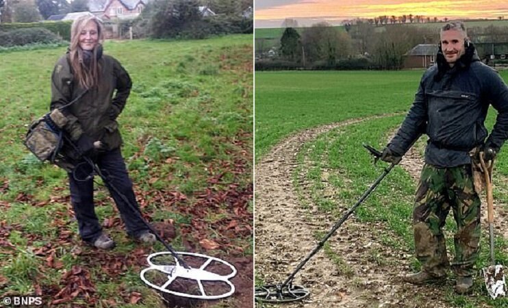 Adam și Lisa au găsit comoară în timp ce mergeau cu detectoare de metale printr-un câmp în Somerset.