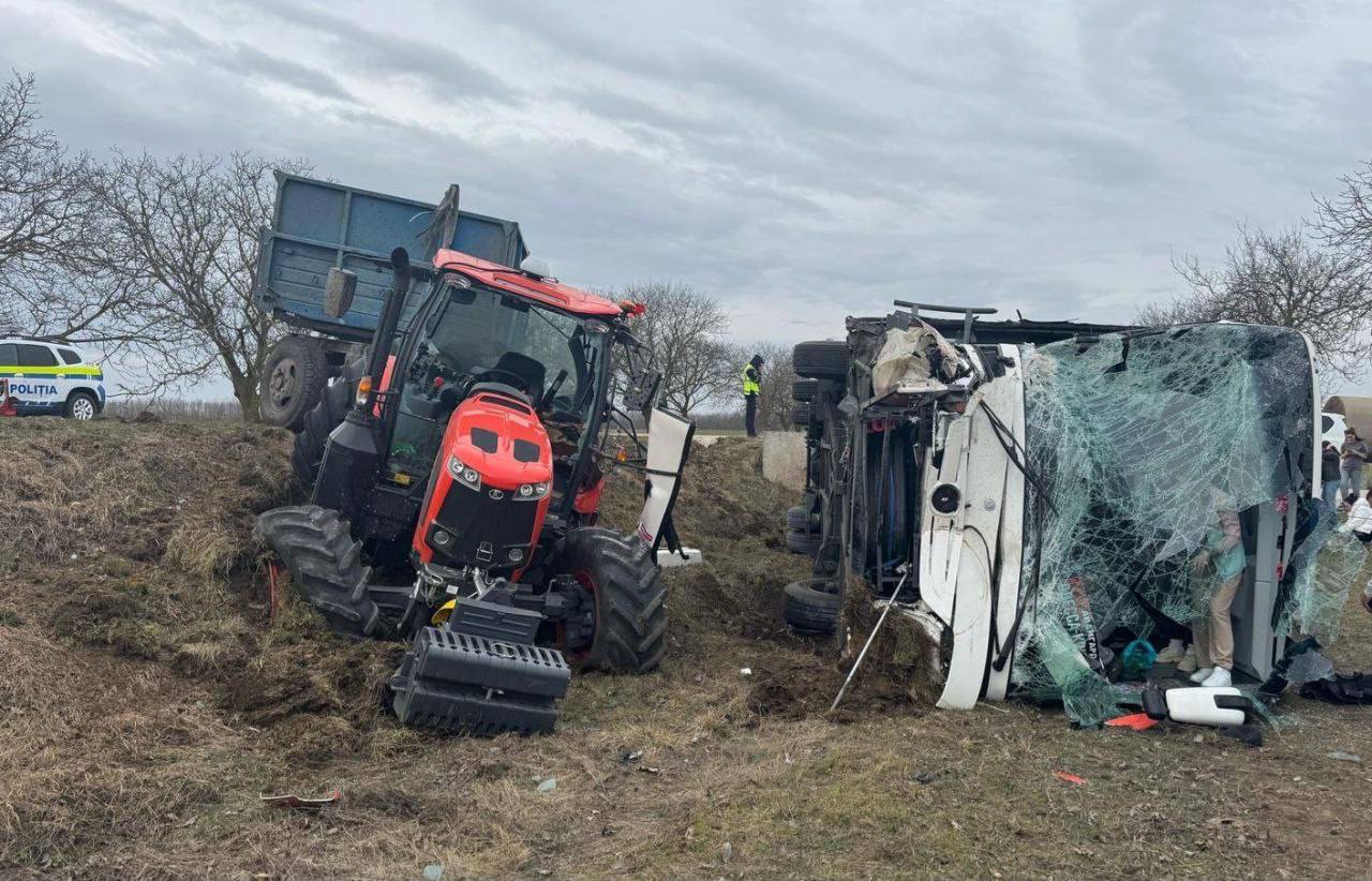 Din primele informații, un autocar cu 27 de pasageri s-a tamponat cu un tractor. Din fericire, nu există victime, iar testele la alcool ale ambilor șoferi au ieșit negative.