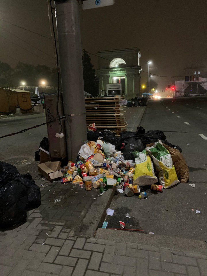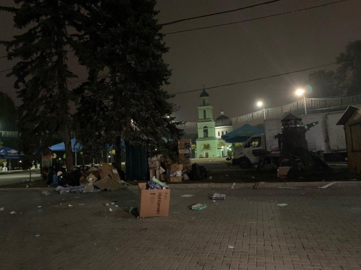 Peste 20 de muncitori de la Regia „Autosalubritate” au muncit ore în şir ca să facă curăţenie în centrul oraşului. Pe lângă sacii plini cu gunoaie lăsați pe marginea trotuarelor, în apropierea trecerilor de pietoni şi sub copaci au fost aruncate resturi de mâncare, dar şi uleiul folosit la prepararea bucatelor, transmite publika.md.