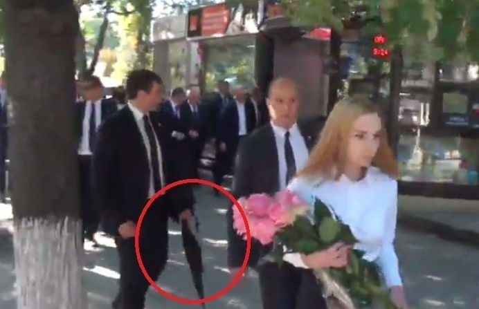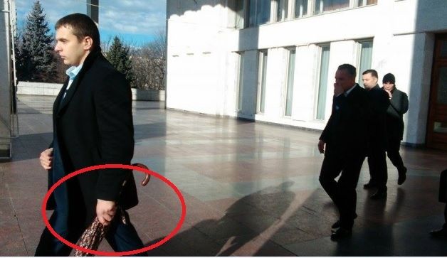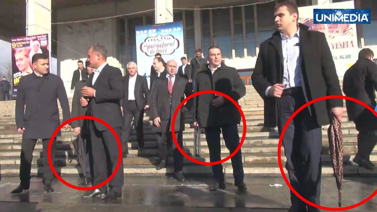 Deși cabinetul este amenajat cu mobilă luxoasă și decoruri poleite cu aur, bloggerul a atras atenția asupra umbrelelor din colțul camerei. Potrivit informațiilor, anume cu aceste umbrele antiglonț erau păziți de bodyguarzi membrii PDM, inclusiv și liderul acestora, Vlad Plahotniuc.