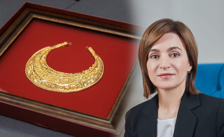 În cadrul vizitei sale la Kiev, președintele Maia Sandu a primit un colier de aur din partea lui Volodymyr Zelenskyy, informează Telegraph.md, cu referire la comunicatul oficial al Președinției.