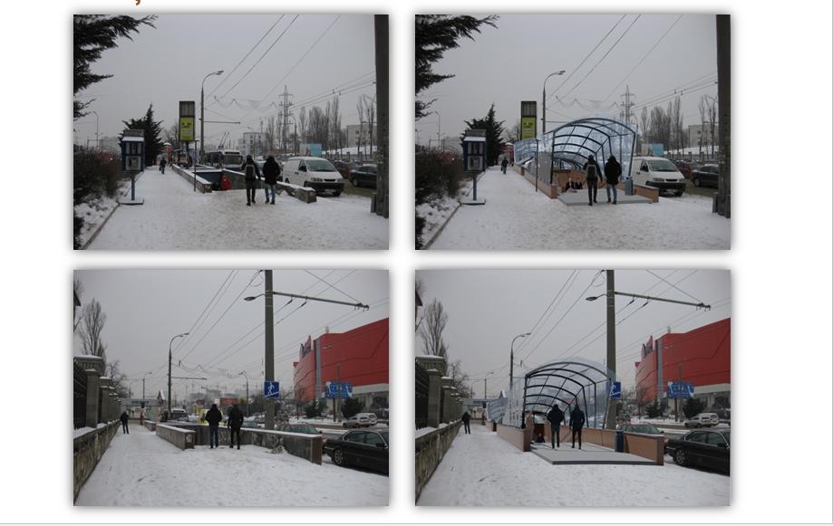 Un element nou, al conceptului trecerii subterane propus de către arhitecți, reprezintă acoperirea scărilor cu copertine din sticlă triplex sau sticlă organică pe carcasă din metal, pentru creșterea duratei de exploatare, dar și a confortului de utilizare.