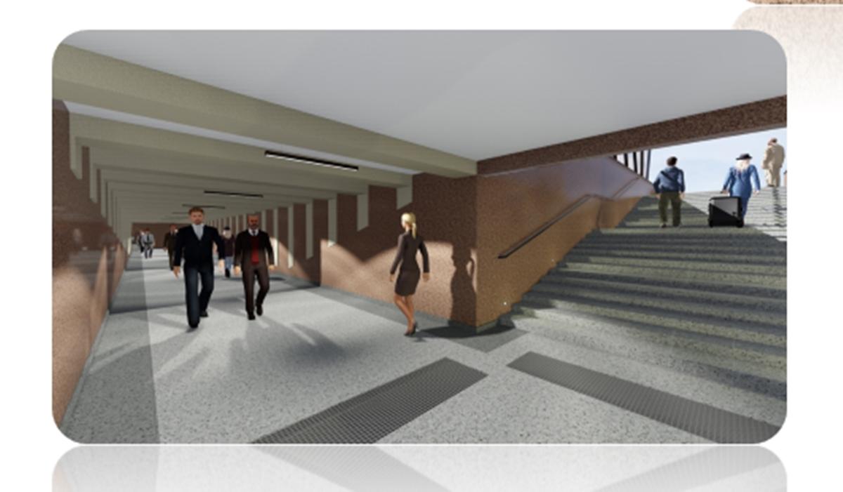 Un element nou, al conceptului trecerii subterane propus de către arhitecți, reprezintă acoperirea scărilor cu copertine din sticlă triplex sau sticlă organică pe carcasă din metal, pentru creșterea duratei de exploatare, dar și a confortului de utilizare.