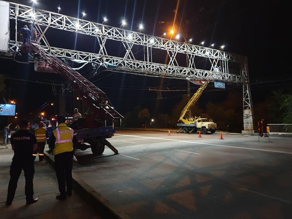 La fața locului sunt responsabilii dar și polițiștii care asigură circulația rutieră. Panourile publicitare de la intersecția bd. Grigore Vieru, Renașterii Naționale și Albișoara vor fi demontate. Centrul orașului trebuie și merită să arate altfel,” a scris edilul pe pagina sa de Facebook cu câteva minute în urmă.