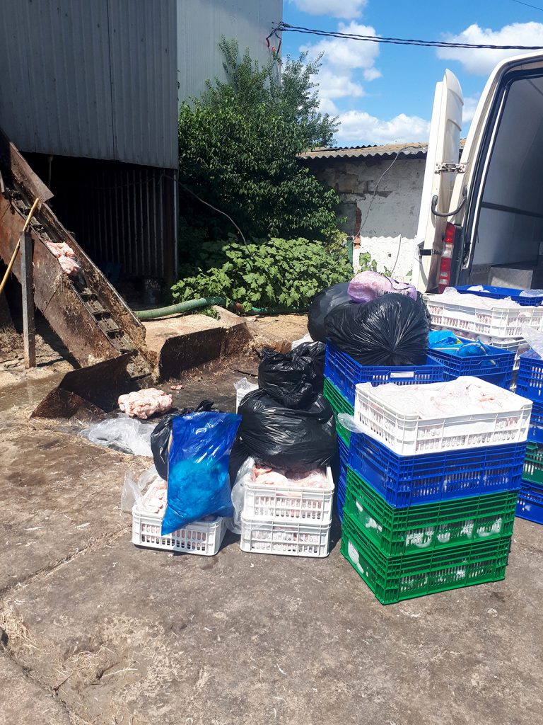 Produsele infectate, au fost încărcate într-o unitate de trasnport specială și, fiind însoțit de inspectorii Direcției de Patrulare Nord a INSP, au fost transportat la locul de nimicire.