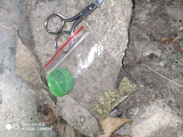 În timpul verificării s-a constatat că, persoana în vârstă de 24 ani, domiciliată în mun. Chișinău, avea asupra sa un aparat artizanal pentru consum de droguri și un pliculeţ cu o substanţă vegetală mărunţită de culoare verzuie cu un miros specific.