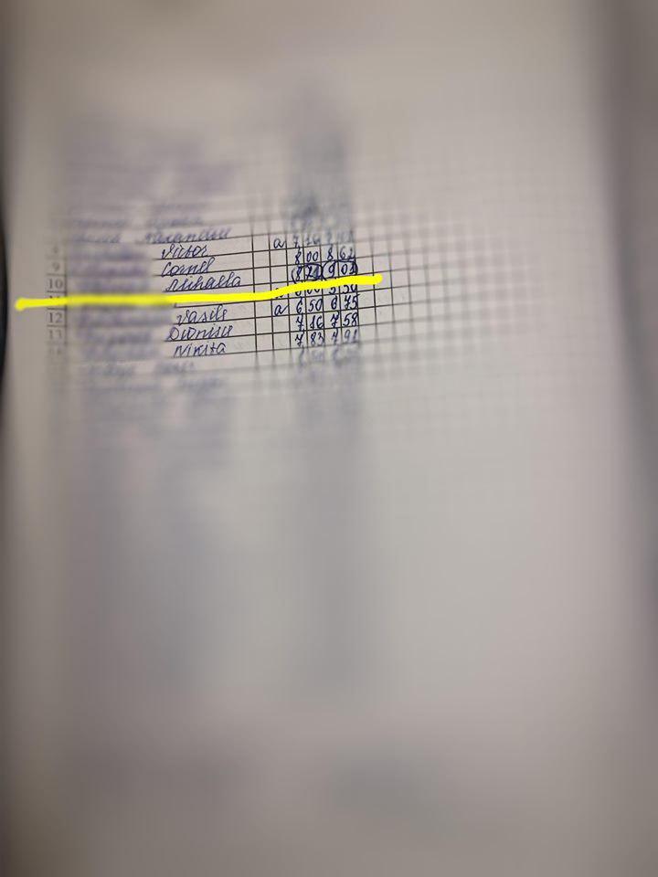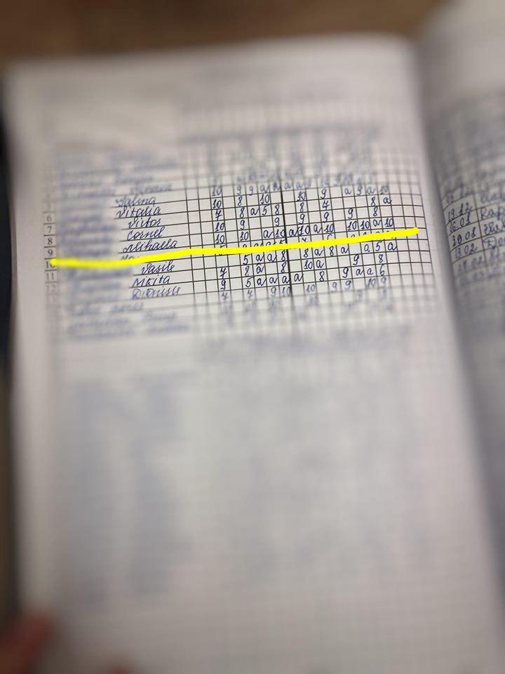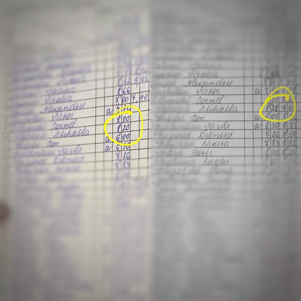 Elevul care ne-a rugat să îi păstrăm anonimatul, ne-a trimis poze din registrul de note, făcute în zile diferite. În aceste poze, vedem o elevă, prenumele căreia este Mihaela, care se pare că se află în relații foarte apropiate cu profesorii acestei instituții, dacă media ei a fost mărită intenționat. La unul din obiectele de studiu, printre literele „a” foarte multe la număr, s-au „strecurat” tocmai 8 note de 10, fapt care a făcut posibilă o creștere „peste noapte” a notei medii.