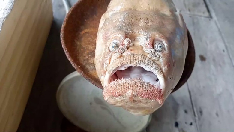 Peștele, dintr-o specie necunoscută, are buze uriașe și ochi mari, iar pescarul care l-a prins a spus că arata ca „o persoană urâtă și încruntată”, potrivit Profimedia.