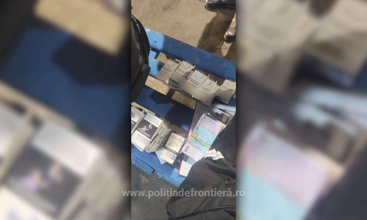 În baza profilului de risc, s-a procedat la efectuarea unui control amănunțit asupra mijlocului de transport şi persoanei, ocazie cu care echipa comună de control, formată din poliţişti de frontieră şi lucrători vamali, a descoperit asupra bărbatului suma de 80.000 de euro, nedeclarată și ascunsă, în vederea sustragerii de la controlul vamal, în șosete, precum și cantitatea de 70 de pachete de țigări cu timbre de acciză R. Moldova, ascunse pe corp și în șosete.