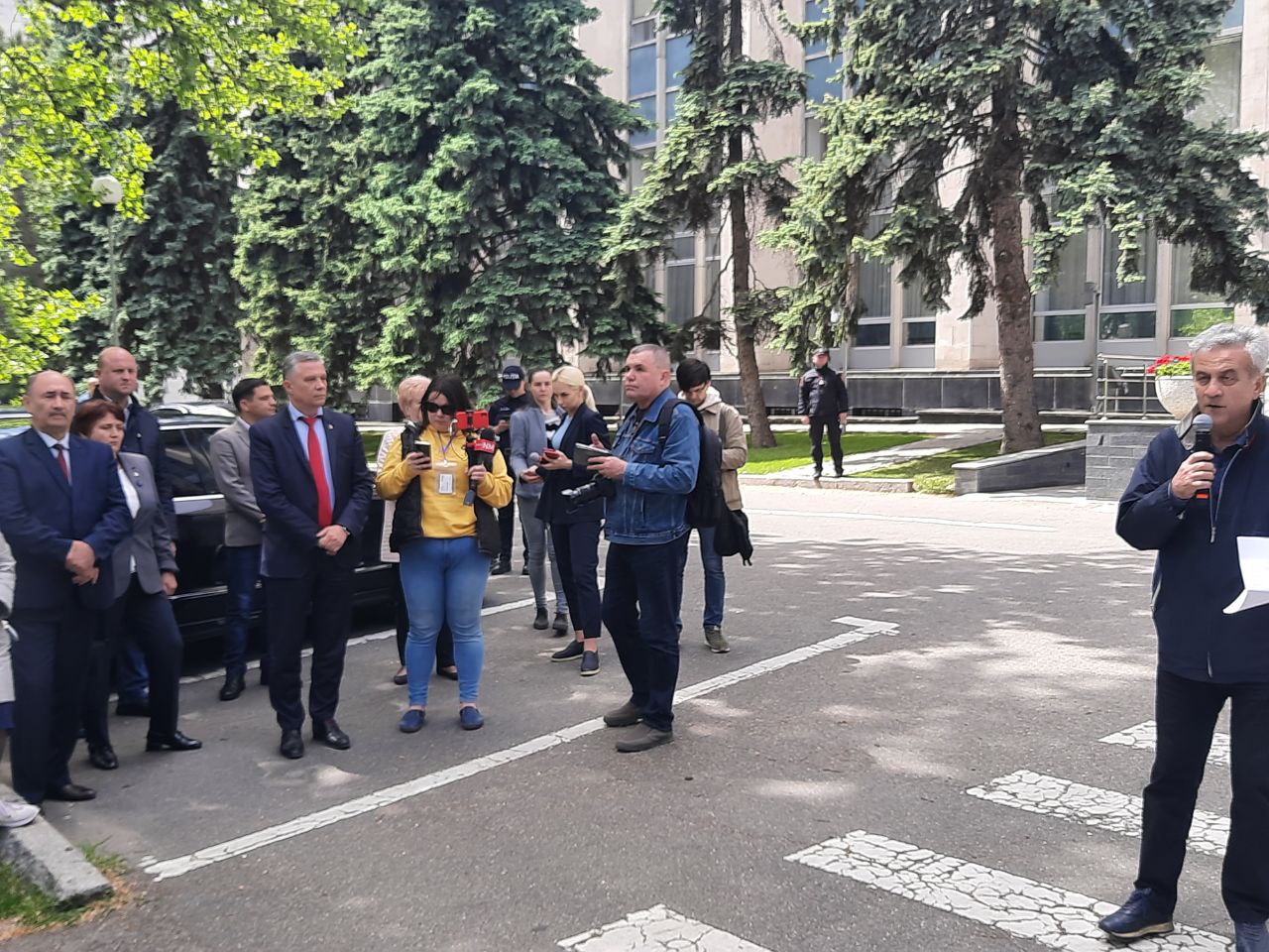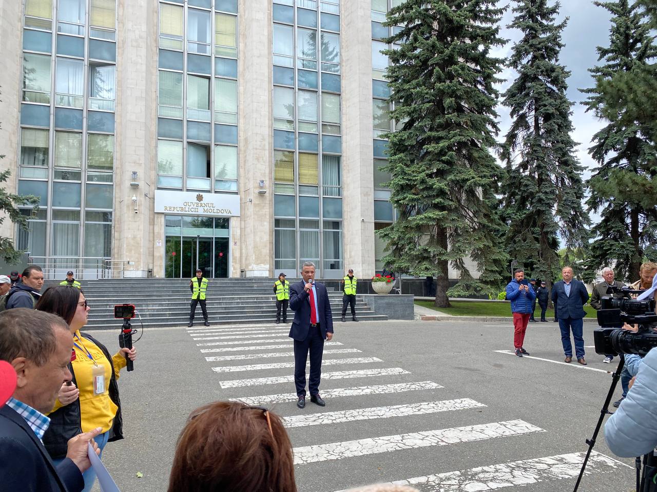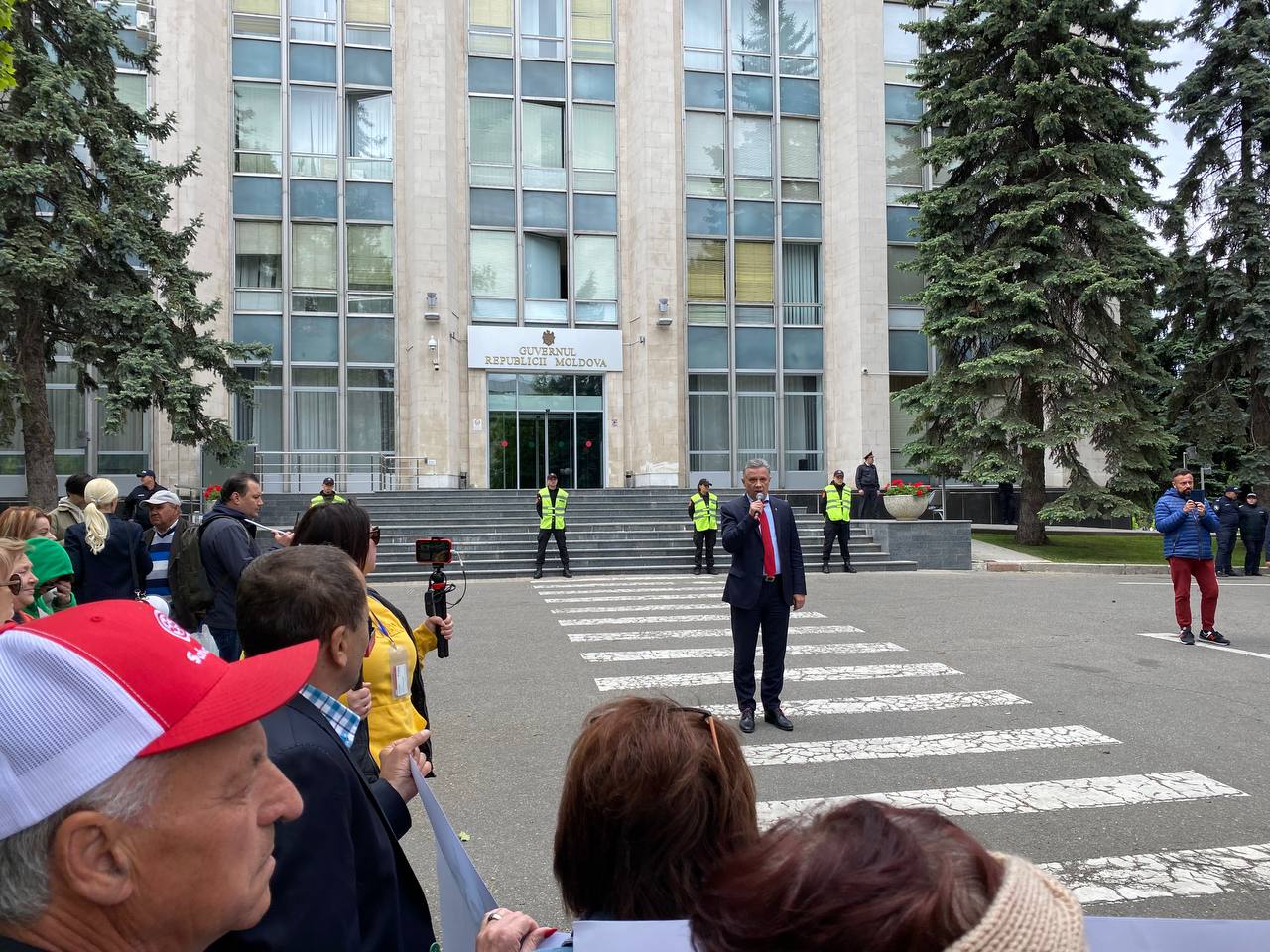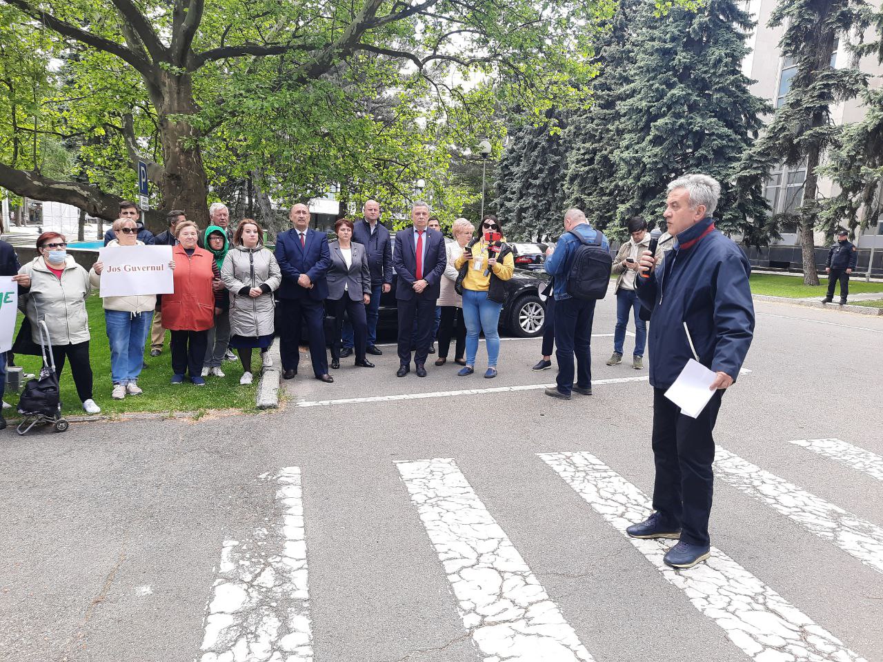 Vremuri bune cu prețuri nebune! Jos Guvernul și guvernarea PAS, care au dus poporul de nas! Acestea sunt câteva dintre lozincile scandate în cadrul unui flash-mob organizat miercuri, în fața executivului, de membrii și simpatizanții Partidului Comuniștilor din Republica Moldova, la care au participat și reprezentanții Partidului „ȘOR”.
