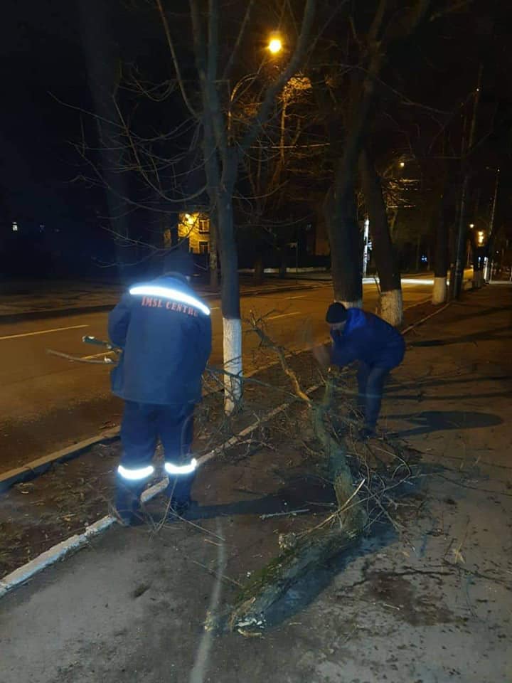 Din cauza vântului puternic care a avut loc pe parcursul nopții mai mulți copaci, crengi, dar și fire electrice au fost doborâte la pământ.