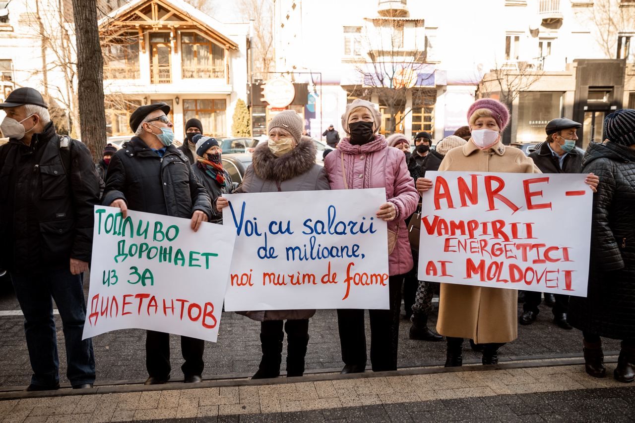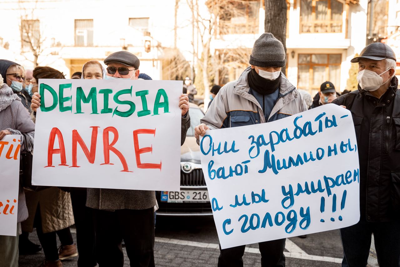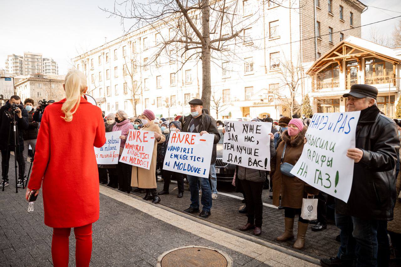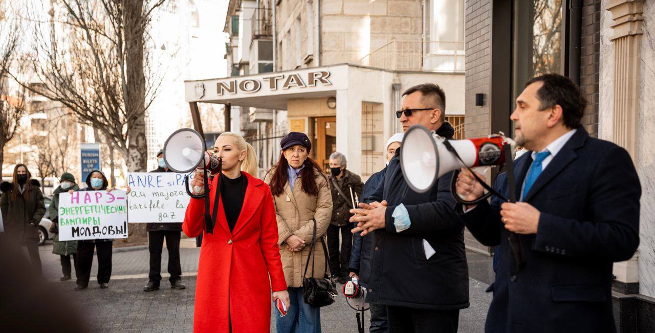 Câteva sute de oameni au manifestat astăzi în fața Agenției Naționale pentru Reglementare în Energetică, în cadrul unei acțiuni de protest organizate de Partidul „ȘOR”. Aceștia au cerut demisia reprezentanților instituției de reglementare, din cauza creșterilor fără precedent a prețurilor pentru energie. De asemenea ei au scandat lozinci împotriva guvernării PAS și a președintelui Maia Sandu, pe care i-au acuzat de incompetență și rea voință.