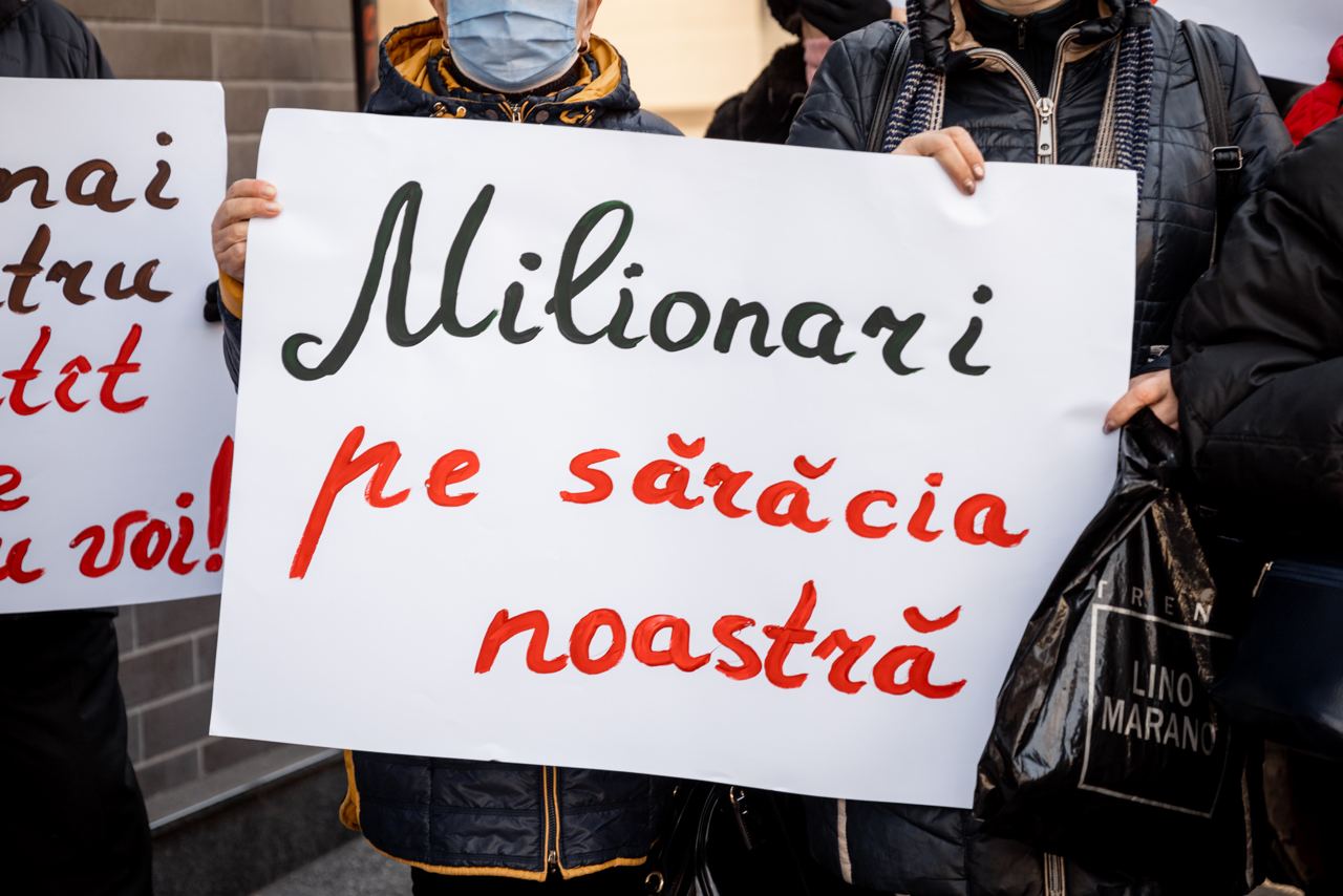 „Prim-ministrul Natalia Gavrilița ne spune că în toată lumea au loc scumpiri. De acord, doar că guvernele statelor lumii nu-i lasă pe cetățeni să moară de foame, le acordă ajutoare, compensații, produse alimentare, dar nouă nimeni nu ne dă nimic. Voi cu salarii de milioane, noi murim de foame!”, a spus o pensionară.