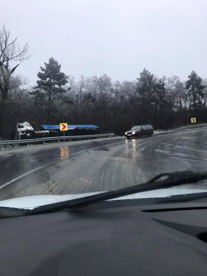 Din cauza poleiului de pe carosabil, un TIR s-a răsturnat pe traseul Chișinău-Hâncești, informează Telegraph.md