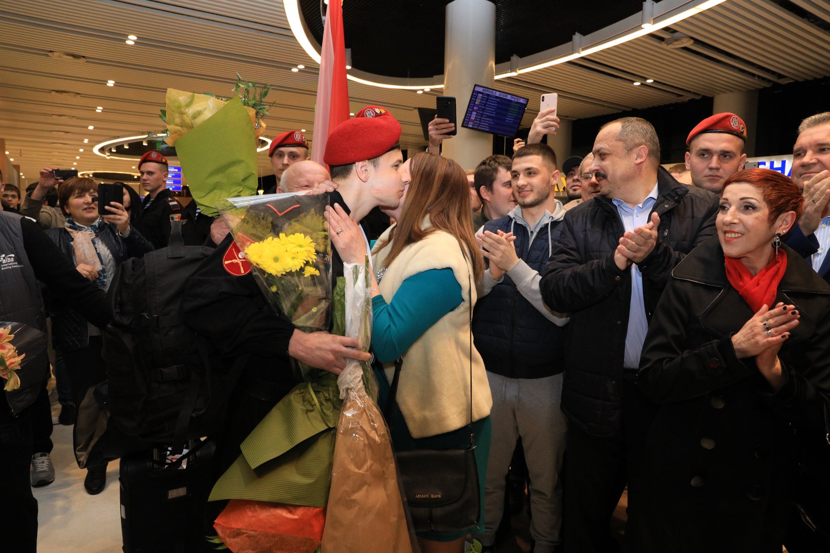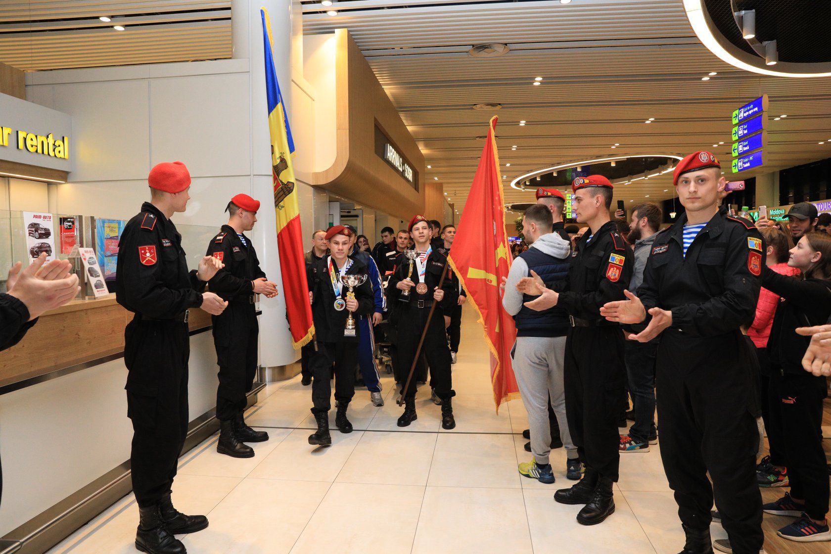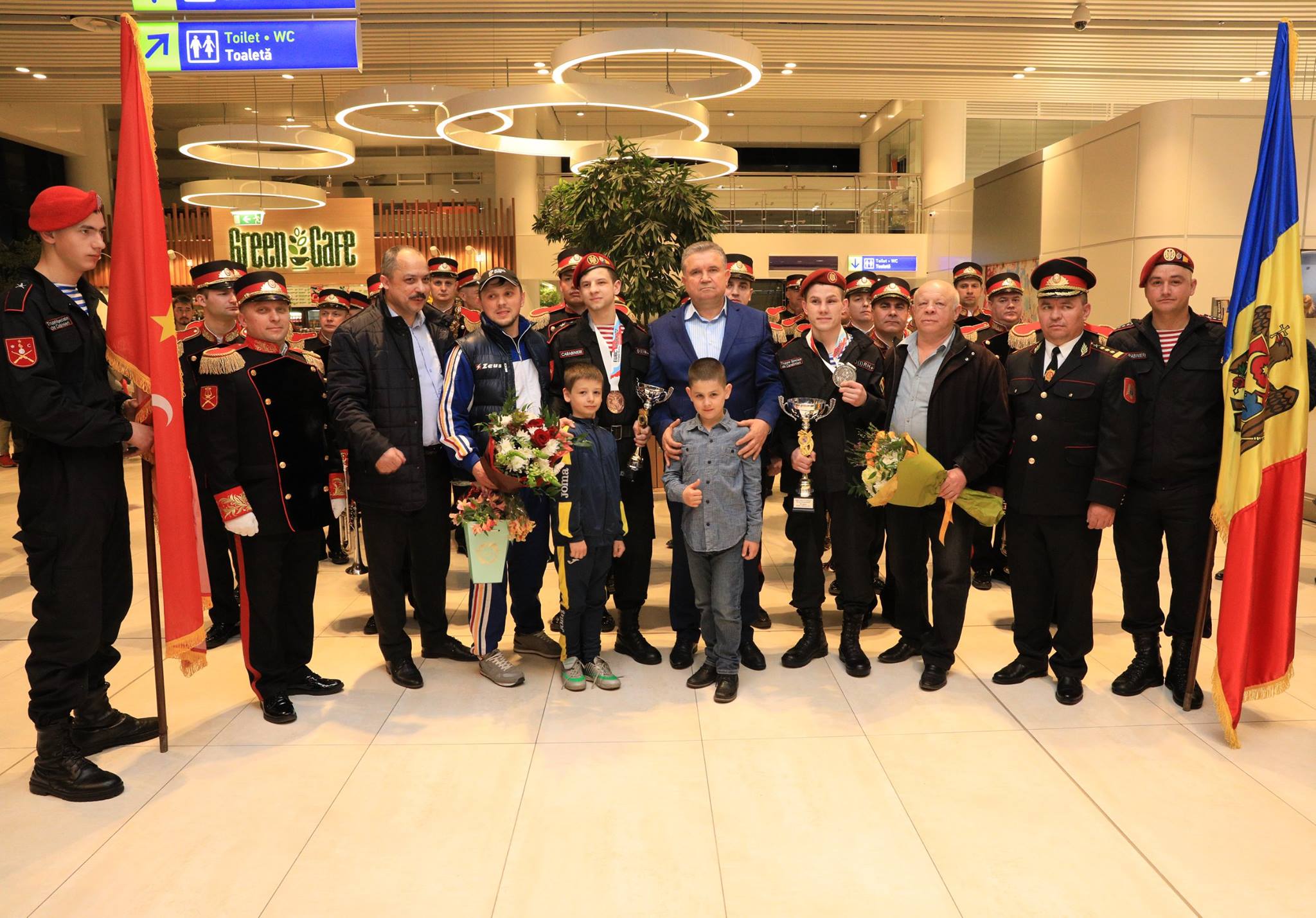 Ieri, 18 martie 2019, în sala de așteptare a aeroportului internațional Chișinau au fost întâmpinați cu drapelul de stat, sunete de fanfară, flori și multe aplauze sportivii Departamentului Trupelor de Carabinieri care au revenit acasă cu două medalii pentru Republica Moldova de la Campionatul European Under 22, desfășurat în Vladikavkaz (Federația Rusă).