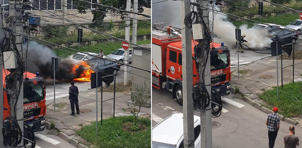 Serviciul 112 a primit un apel precum că un automobil a luat foc chiar în mijlocul drumului. Imaginile de la locul faptei au fost făcute de un martor ocular, iar apoi postate pe internet. Din fotografii se vede cum arde secția motorului al unuia dintre vehicule. Pompierii ajunși la fața locului au stabilit că flăcările au trecut de pe mașina incendiată pe un automobil parcat la marginea drumului. În consecință, focul a distrus aproximativ 40% din salonul și caroseria vehiculelor.