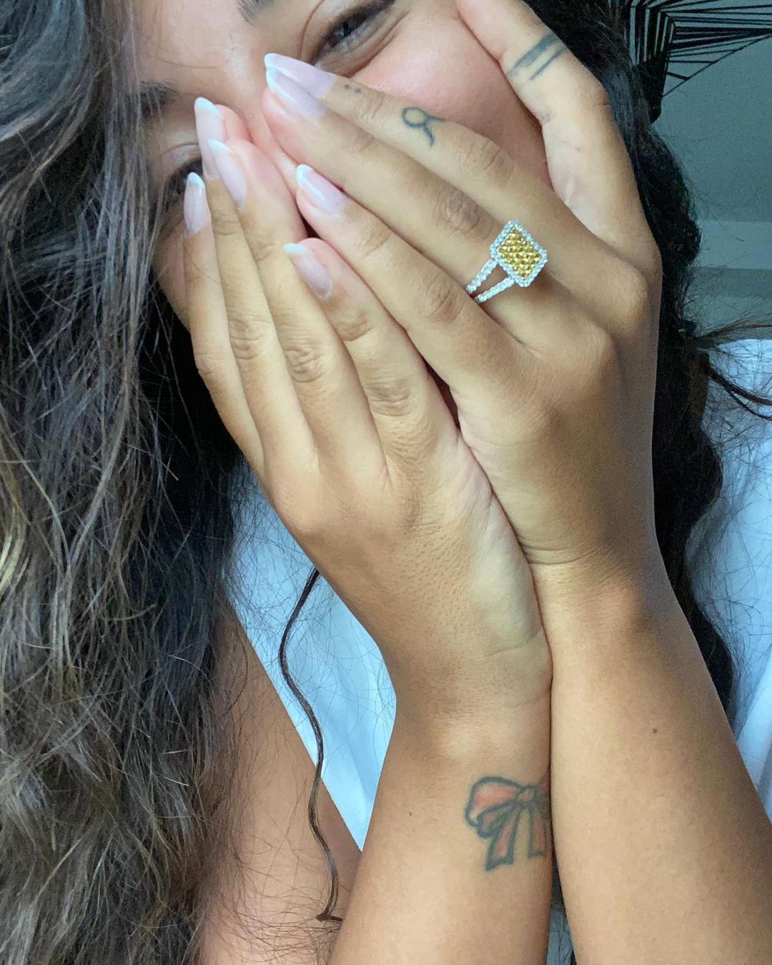 Astăzi dimineața, interpretul român Alex Velea a făcut marele anunț pe pagina sa de Instagram. El a publicat o fotografie cu Antonia care poartă pe degetul inelar o bijuterie imensă, cu o piatră mare galbenă la mijloc și mult pietricele strălucitoare în jur.