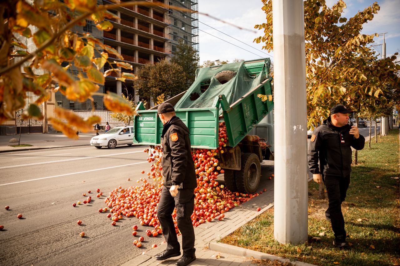 Câteva tone de mere au fost descărcate în fața Ministerului Agriculturii, în semn de protest față de lipsa pieței de desfacere pentru producătorii agricoli din Moldova, precum și față de atitudinea nepăsătoare a guvernării PAS în raport cu sectorul agrar și problemele cu care se confruntă astăzi fermierii. Acțiunea a avut loc în cadrul unui flashmob, organizat de Partidul „ȘOR” și mai mulți producători agricoli.