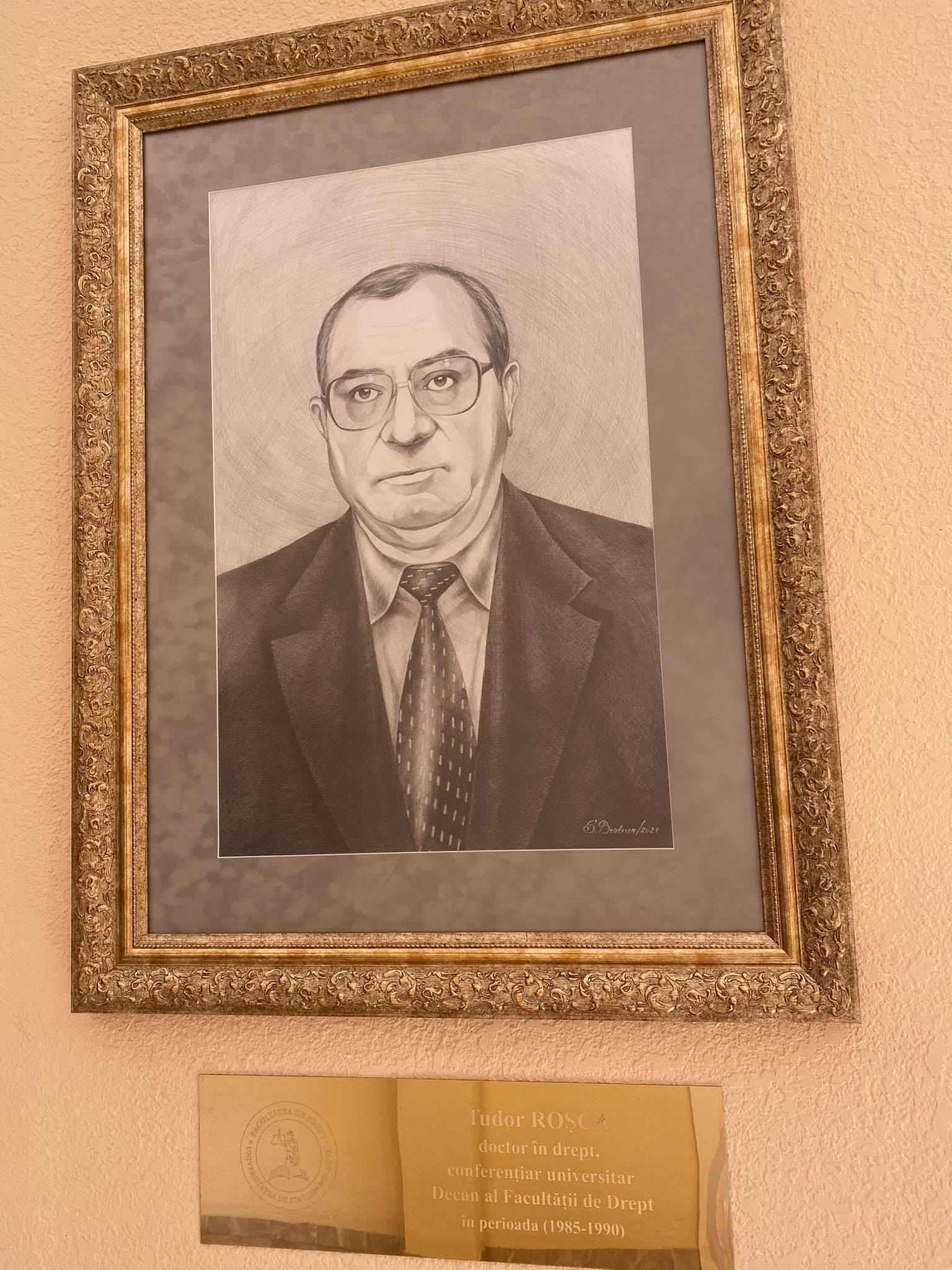 Portretele au fost realizate de către Svetlana Brătescu, studentă a Facultății de Drept, care a încercat să prezinte prin desene naturiste chipurile decanilor Facultății de Drept și să scoată în evidențe chipuri luminoase de lideri incontestabili.