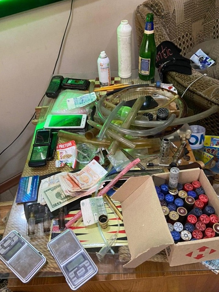 La 6 februarie curent, sub conducerea procurorilor, polițiștii au efectuat mai multe percheziții la domiciliile figuranților și au depistat pachețele care conțineau masă solidă similară drogurilor de tip PVP, precum și cântare electronice, râșnițe pentru măcinarea drogurilor de tip marijuana, obiecte din sticlă destinate consumului de droguri prin inhalație, telefoane mobile și alte dispozitive electronice, precum și mijloace financiare în sumă de circa 5000 de lei.