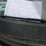 Pentru a-l învăța minte pe șofer, tînăra mămică i-a pus pe parbriz un bilețel cu următorul mesaj: „Trotuar! oa*e fără creieri! Data viitoare va fi piatră, nu bilețel.”