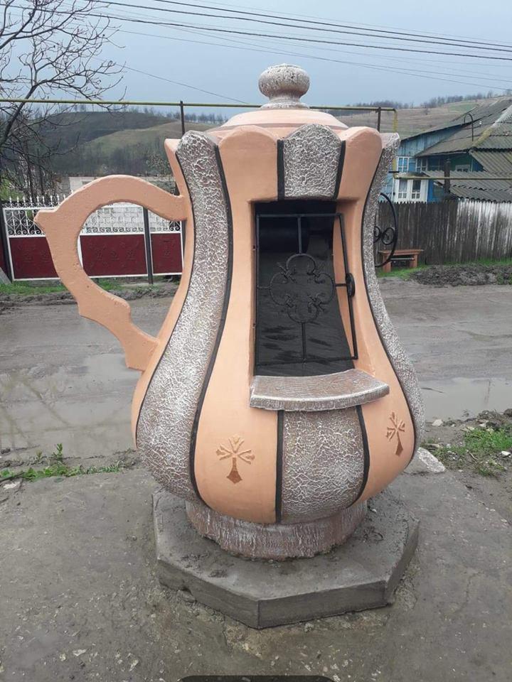 Fântâna este construită sub forma unui ulcior tradițional moldovenesc și este unică în toată țara.
