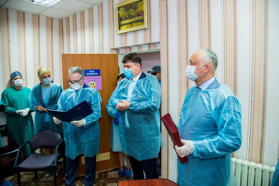 Șeful statului a exprimat gratitudine personalului spitalului pentru munca asiduă depusă zi de zi și, în special, pentru eforturile în combaterea pandemiei. Dodon a înmânat unor angajați ai spitalului ”Diploma de Onoare a Președintelui” și i-a informat despre inițiativa de dublare a salariilor tuturor lucrătorilor medicali din țară.