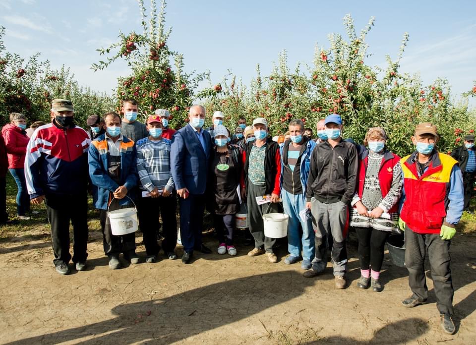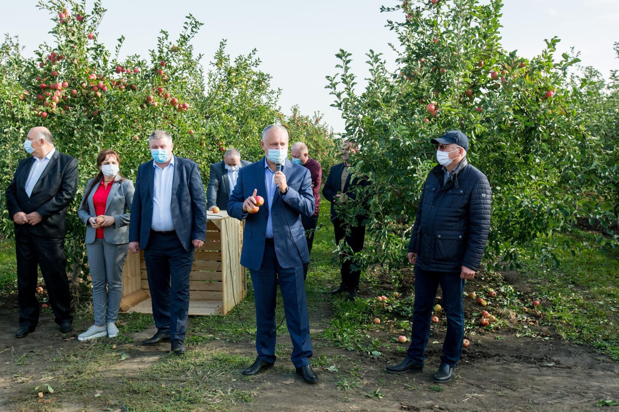 Noi avem livezi frumoase de meri de pe care atârnă ciorchine grele de mere mustoase și gustoase – și toate acestea datorită muncii unor oameni extraordinari care în aceste zile recoltează roada bogată de fructe,” a scris Igor Dodon pe pagina sa de Facebook.