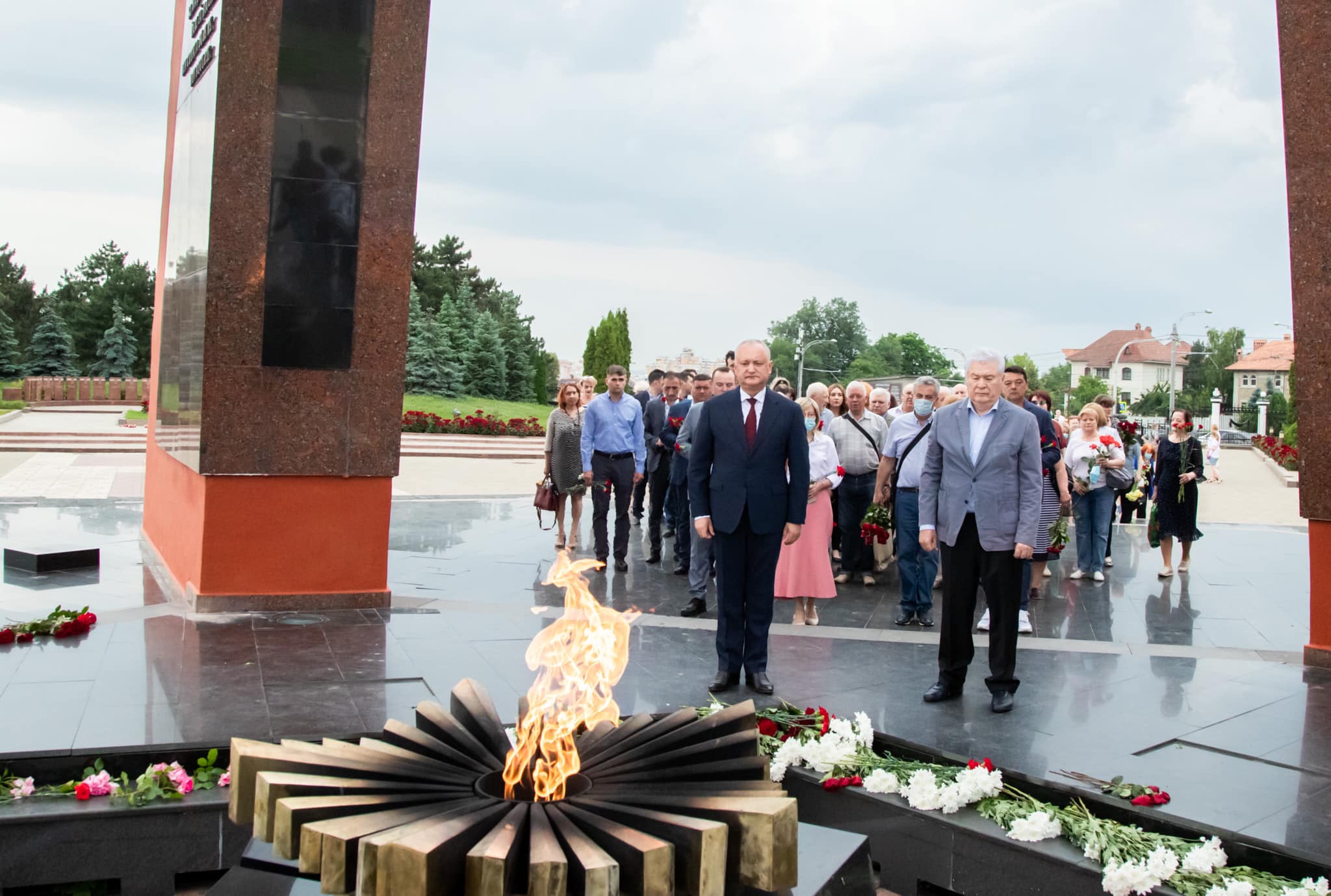 Astăzi, cu ocazia marcării a 80 de ani de la începutul Marelui Război pentru Apărarea Patriei, împreună cu Vladimir Voronin, președintele Partidului Comuniștilor din Republica Moldova, Igor Dodon a depus flori la ”Focul Veșnic” de la Complexul Memorial „Eternitate” din capitală.