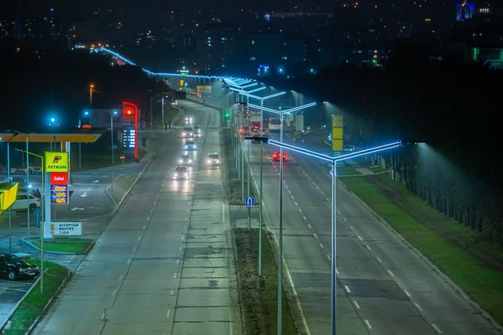 Au fost instalate 150 de felinare pe bază de LED, iar rețelele electrice și cablul de alimentare au fost montate subteran.
