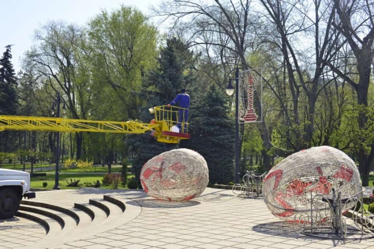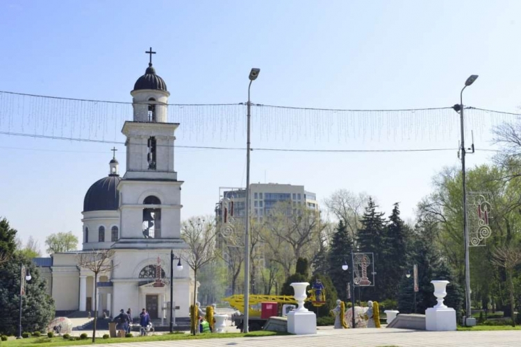 În Scuarul Catedralei Mitropolitane „Nașterea Domnului” sunt amenajate tradiționalele decorațiuni luminoase, specifice sărbătorilor de Paști.
