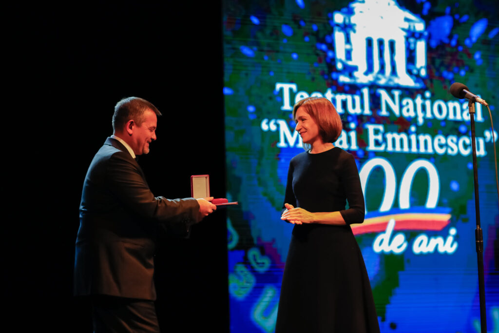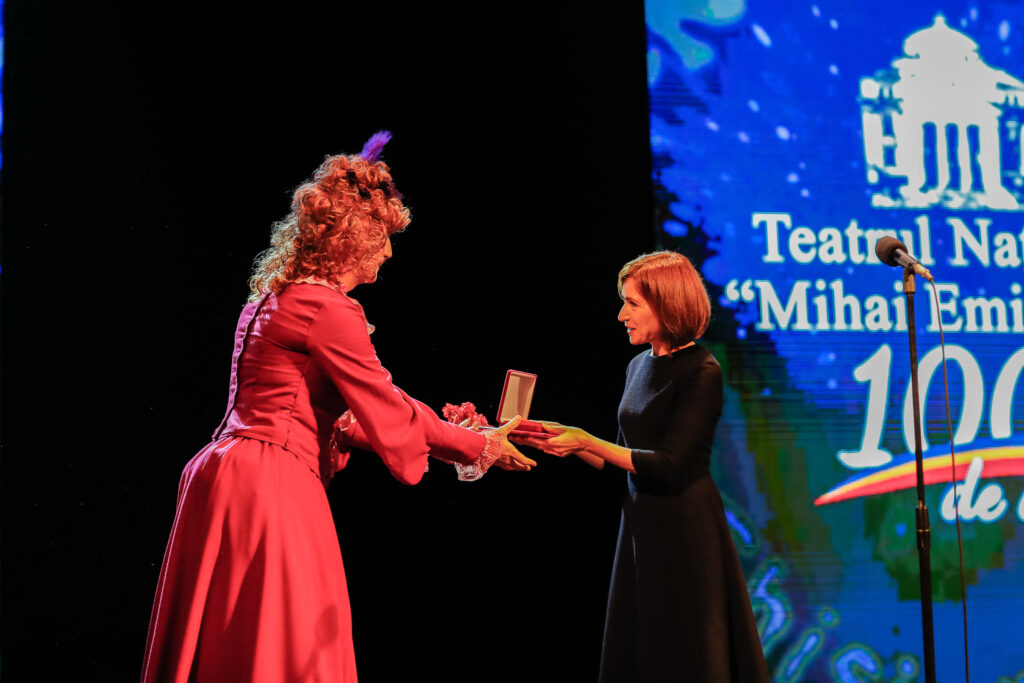 „Mi-am exprimat respectul pentru înaintașii artei teatrale din Moldova, dar și pentru efortul și talentul echipei de astăzi a Teatrului Național. Le-am mulțumit pentru dedicație și, în semn de apreciere, am conferit câteva titluri onorifice unor nume notorii ale acestui teatru. Sunt nume care, cu siguranță, vor rămâne gravate în istoria scenei naționale. La mulți ani de succes, Teatrul Național „Mihai Eminescu”!”, a încheiat doamna Maia Sandu.