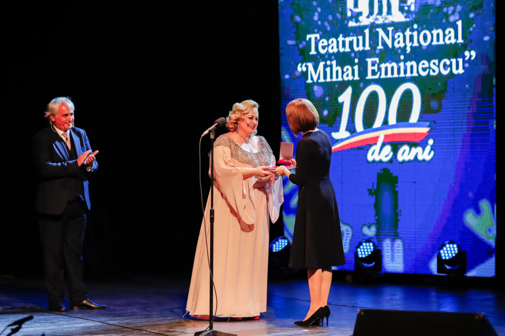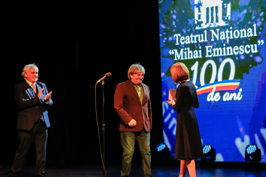 În mesajul său, șefa statului a menționat că scena Naționalului din Chișinău, pereții lui poartă memoria a generații întregi de figuri legendare, care au făcut istorie și au schimbat istoria. Dovadă este și retrospectiva unui secol de teatru, pe care ne-au oferit-o actorii de la „Mihai Eminescu”.