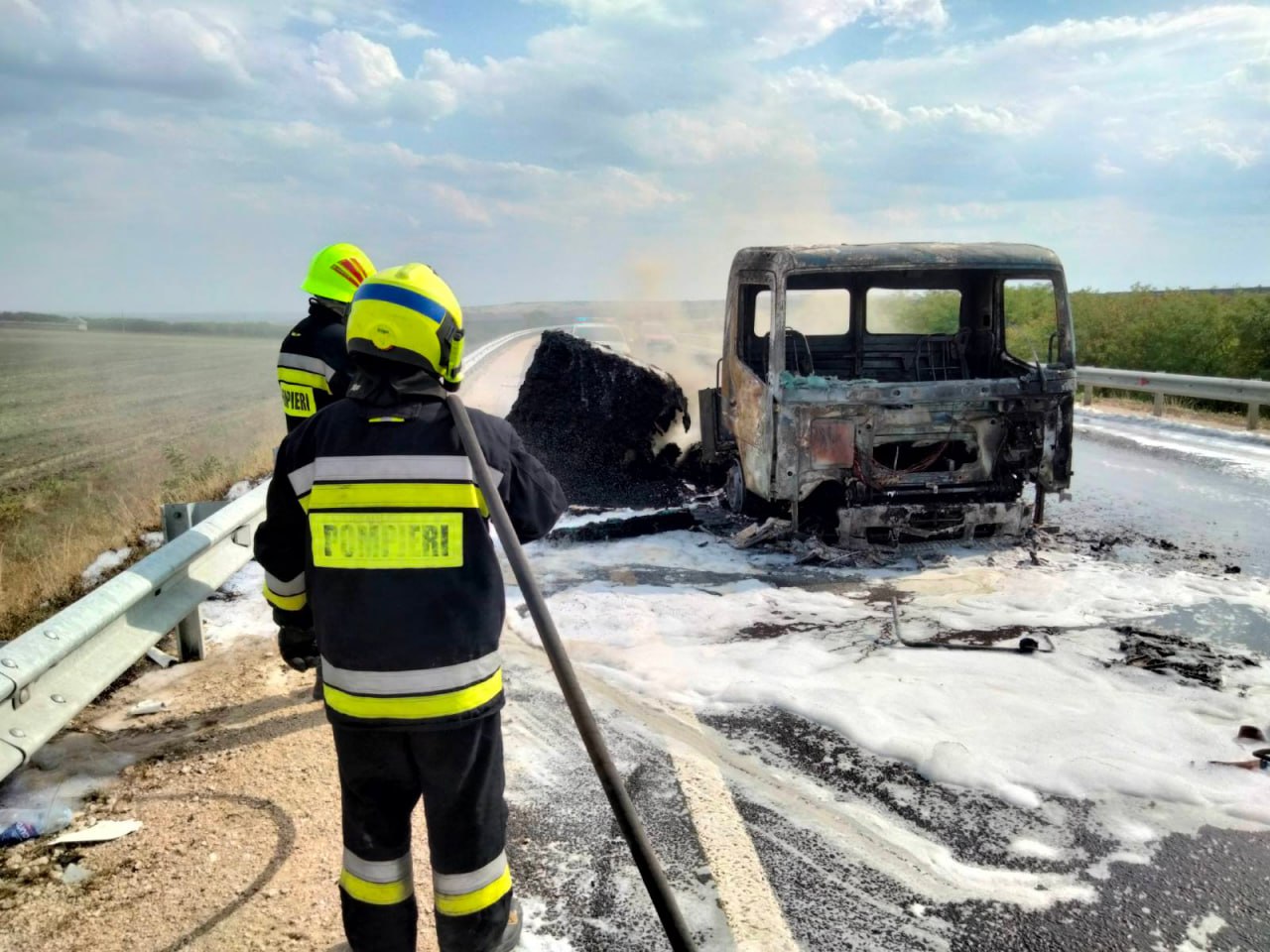 Apelul la Serviciul 112 a fost recepționat la ora 15:28. Potrivit primelor informații înregistrate, un camion de model Atego, încărcat cu panouri sandwich, a luat foc în timpul deplasării.