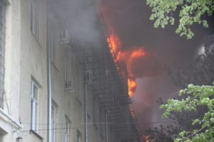 La fața locului pentru localizarea arderii au fot antrenate 14 autospeciale de intervenție cu peste 100 de pompieri și salvatori. Ajunși la locul incendiului, pompierii au evacuat toate persoanele din interiorul clădirii și au stabilit că flăcările au cuprins o suprafață de peste 1000 metri pătrați a acoperișului.