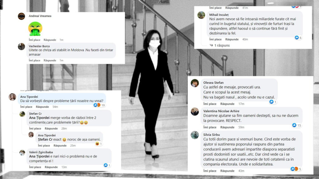 „Nu faceți din țânțar armasar”, „Da să vorbești despre problemele țării noastre nu vreai”, „Cu astfel de mesaje, provocați ură. Nu vă băgați nasul, acolo unde nu e cazul”, „Să nu ne ducem la provocare”, „Doar vorbe goale…”, „Nu te băga acolo unde nu trebuie” – sunt doar unele comentarii plasate la postarea Președintelui.